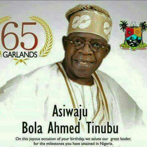 Come, join me in celebrating a living legend, grass root mobilizer, National leader, d custodian of our political history, astute politician, a political prophet and excellent personified @ 65 years Birthday. My prayer for him is that the Almighty God shall continue to protect him, grant him good health and prosper him more. I believe that through his leadership, Nigeria will not be the same, in handling unemployment, insecurity and economy crisis, Nigeria shall be great again.