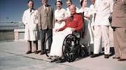 paralytic illness of Franklin D. Roosevelt (1882–1945) began in 1921 when the future president of the United States was 39 years old. His main symptoms were fever; symmetric, ascending paralysis; facial paralysis; bowel and bladder dysfunction; numbness and hyperesthesia; and a descending pattern of recovery. Roosevelt was left permanently paralyzed from the waist down. He was diagnosed with poliomyelitis. In 1926, Roosevelt’s belief in the benefits of hydrotherapy led him to find a rehabilitation center at Warm Springs, Georgia. He avoided being seen using his wheelchair in public. In 1938, he founded the National Foundation for Infantile Paralysis, leading to the development of polio vaccines.(Wikipedia)